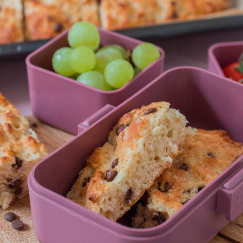 - Schokolade variieren: Statt Schokotropfen kannst du auch gehackte Schokolade verwenden oder die Hälfte der Schokolade durch Rosinen ersetzen. Auch kleine Apfelstückchen passen super zu diesem Quark-Öl Teig.